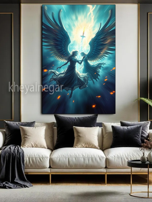 این اثر هنری جذاب، دو فرشته را در حال نبردی حماسی به تصویر میکشد که صحنهای از قدرت و زیبایی که شما را به دنیایی از افسانهها و ماجراجوییها دعوت میکند.