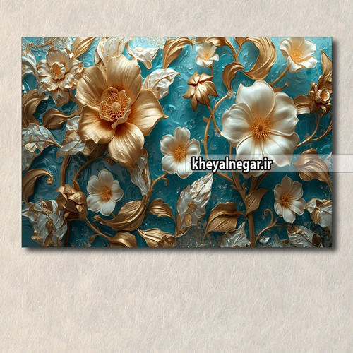 تابلو عکس گل های طلایی و سفید / سه بعدی/ گل‌های طبیعی بهاری _ کدo10