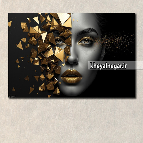 تابلو سه بعدی چهره هنری با جزئیات طلایی / نماد زیبایی مدرن و خلاقیت _ کد O40