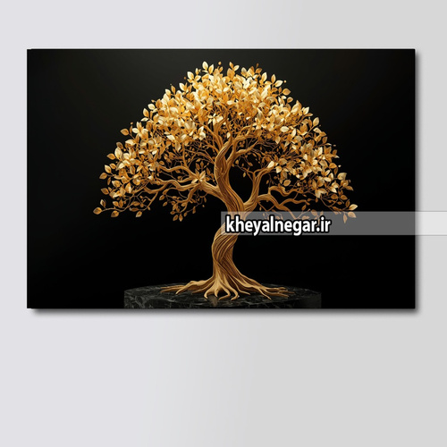 تابلو عکس درخت طلایی با زمینه مشکی _ کد O83