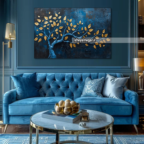 تابلوی درخت آبی با برگ های طلایی رنگ _کد C7