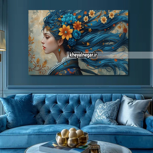 تابلو دکوراتیو مدرن دختر بهار باموهای آبی _کد C11