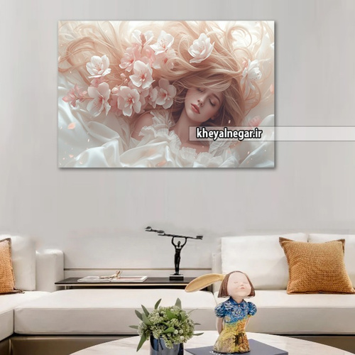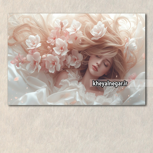 تابلو هنری لوکس دختر زیبا با شکوفههای سفید بهاری - کد C47