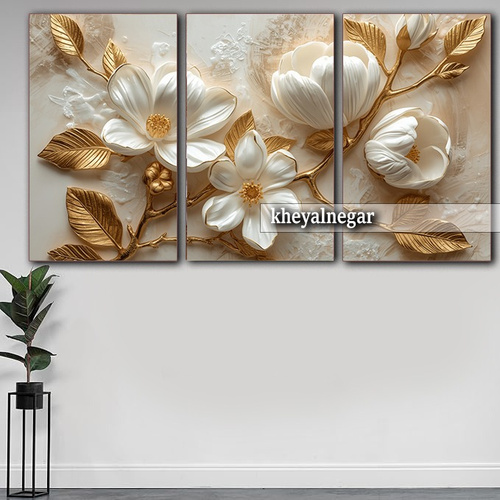 تابلو دکوراتیو سه بعدی و سه تکه گل های سفید جذاب _ کد T16